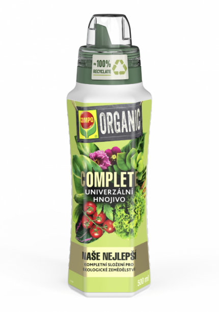 Orgaaniline vedelväetis, sisaldab NPK 3,1+1+4. Koostis: Lämmastik (N) 3,1%, millest ammooniumina (NH4) 0,1%, orgaanilise lämmastikuna 3%; fosfor 1% (P2O5 1%, millest veeslahustuv osa 1%); kaalium 4% (K2O 4%, millest veeslahustuv osa 3,8%); veeslahustuv magneesium (MgO) 0,4%; väävel (S) 0,45%, millest veeslahustuv osa 0,4%. 35% orgaaniline koostis. Tootetud looduslikest taimsete materjalide jääkidest (toit, jook, loomasööt). 1L=11.50€BIO universaalne vedelväetis Compo 0,5l