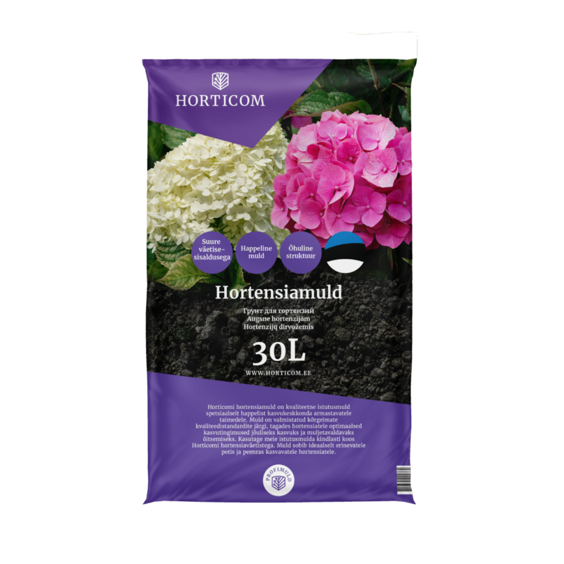 Horticomi hortensiamuld on kvaliteetne istutusmuld spetsiaalselt happelist kasvukeskkonda armastavatele taimedele. Muld on valmistatud kõrgeimate kvaliteedistandardite järgi, tagades hortensiatele optimaalsed kasvutingimused jõuliseks kasvuks ja muljetavaldavaks õitsemiseks. Kasutage meie istutusmulda kindlasti koos Horticomi hortensiaväetistega. Muld sobib ideaalselt erinevatele potis ja peenras kasvavatele hortensiatele.