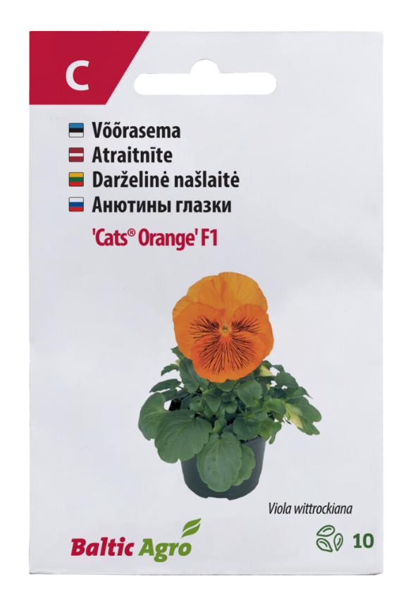 Võõrasema ‘Cats® Orange’ F1 on sügavoranžide õite ja mustade”vurrudega” sort. Kõrgus: 15 cm.